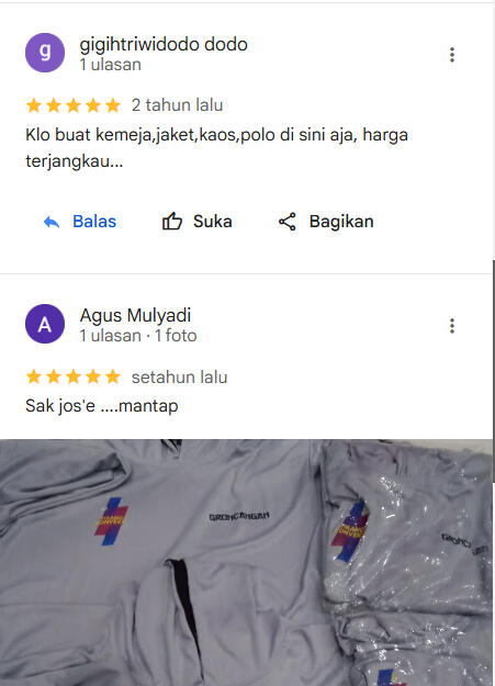 Tidak perlu percaya kata kami saja, dengarkan langsung dari pelanggan setia Tirano Konveksi! Berikut adalah beberapa testimoni dari mereka yang telah merasakan kualitas dan pelayanan terbaik dari kami. Setiap kata adalah bukti nyata komitmen kami untuk memberikan yang terbaik.